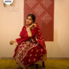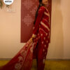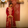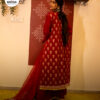 Dupatta – A beautifully embroidered dupatta in a coordinating maroon shade, embellished with intricate cream motifs and a finely crafted border. Its light, flowy texture enhances the overall traditional aesthetic of the outfit.